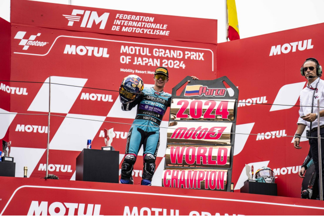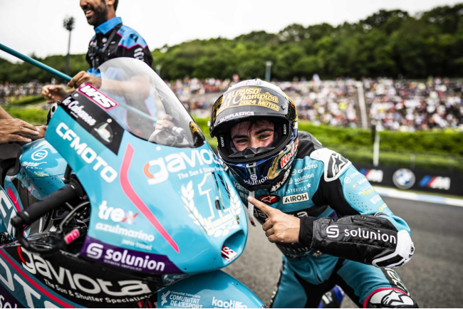Ήταν μακρύς ο δρόμος για να φτάσει στον τίτλο της Moto3 και τον έχει μοιραστεί με πολλούς ανθρώπους. Πολλοί από αυτούς ήταν ακόμη στο βάθρο μαζί του: Jorge, Nico, Mauri, Barabba, Óscar, Roger, Majo, Giagi, Paolo και Vicente. Χωρίς αυτούς, και πολλούς άλλους, δεν θα διαβάζατε αυτό το κείμενο και δεν θα είχε πανηγυρίσει στην Ιαπωνία τον έβδομο παγκόσμιο τίτλο στην κατηγορία ελαφρών βαρών για μια ομάδα master 125 / Moto3, την CFMOTO Aspar Team. Και χωρίς την CFMOTO με την εκπληκτική της μοτοσυκλέτα που με το οδηγικό ταλέντο του Αλόνσο και την άγαστη συνεργασία εργοστασίου – Aspar team, δε θα ερχόταν αυτό το εκπληκτικό αποτέλεσμα.