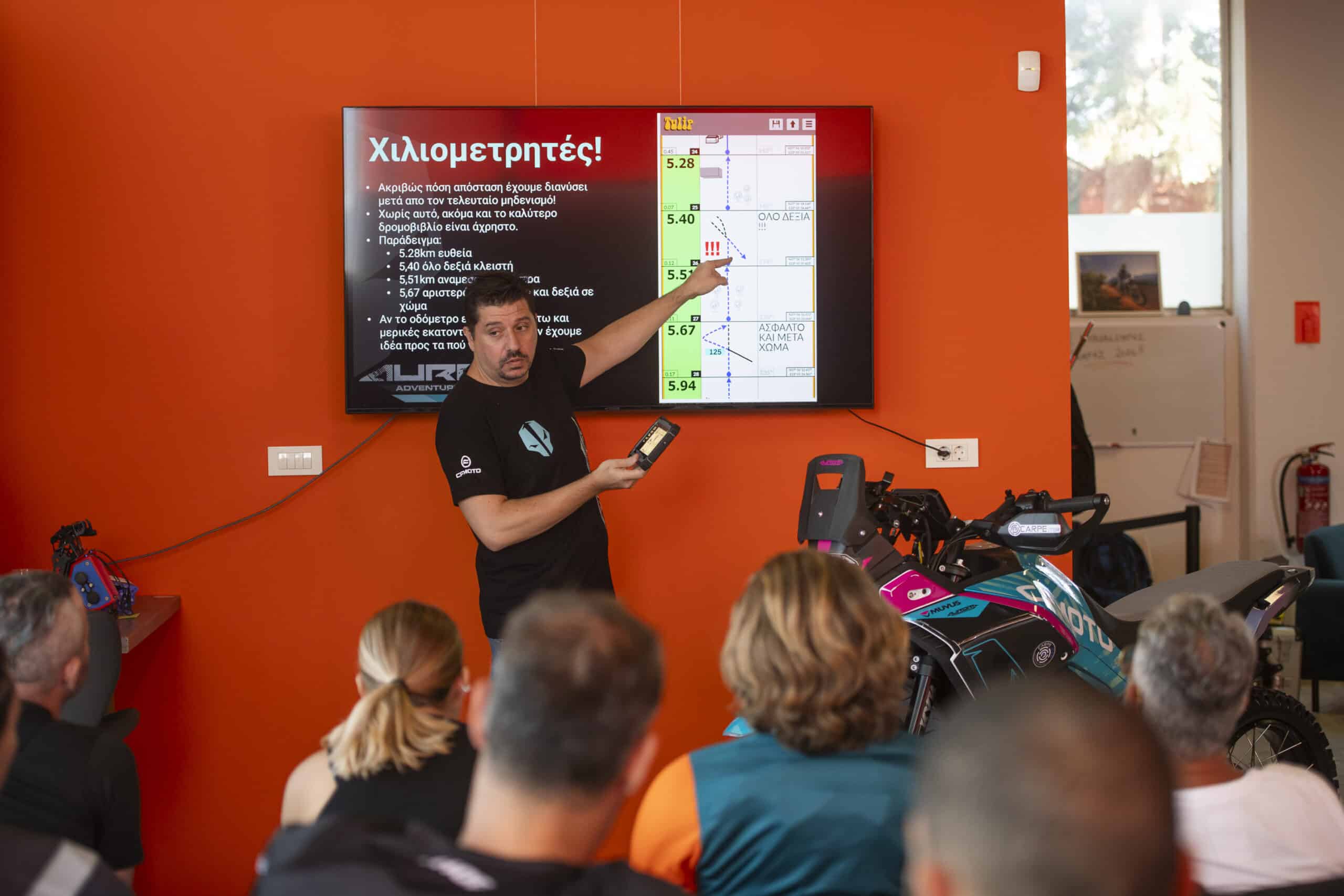 - Μοναδικό : Πλοήγηση με Roadbook (Rally experience)Θα τοποθετηθούν στις μοτοσυκλέτες σας βάσεις, διακόπτες και Tablet της Carpe ιter κατά την διάρκεια της θεωρίας, ούτως ώστε να έχετε μια τέλεια εμπειρία στην πλοήγηση και θα έχετε την δυνατότητα να τεστάρετε σε αληθινές συνθήκες όλα όσα μάθατε υπό την επίβλεψη και καθοδήγηση των έμπειρων εκπαιδευτών μας.