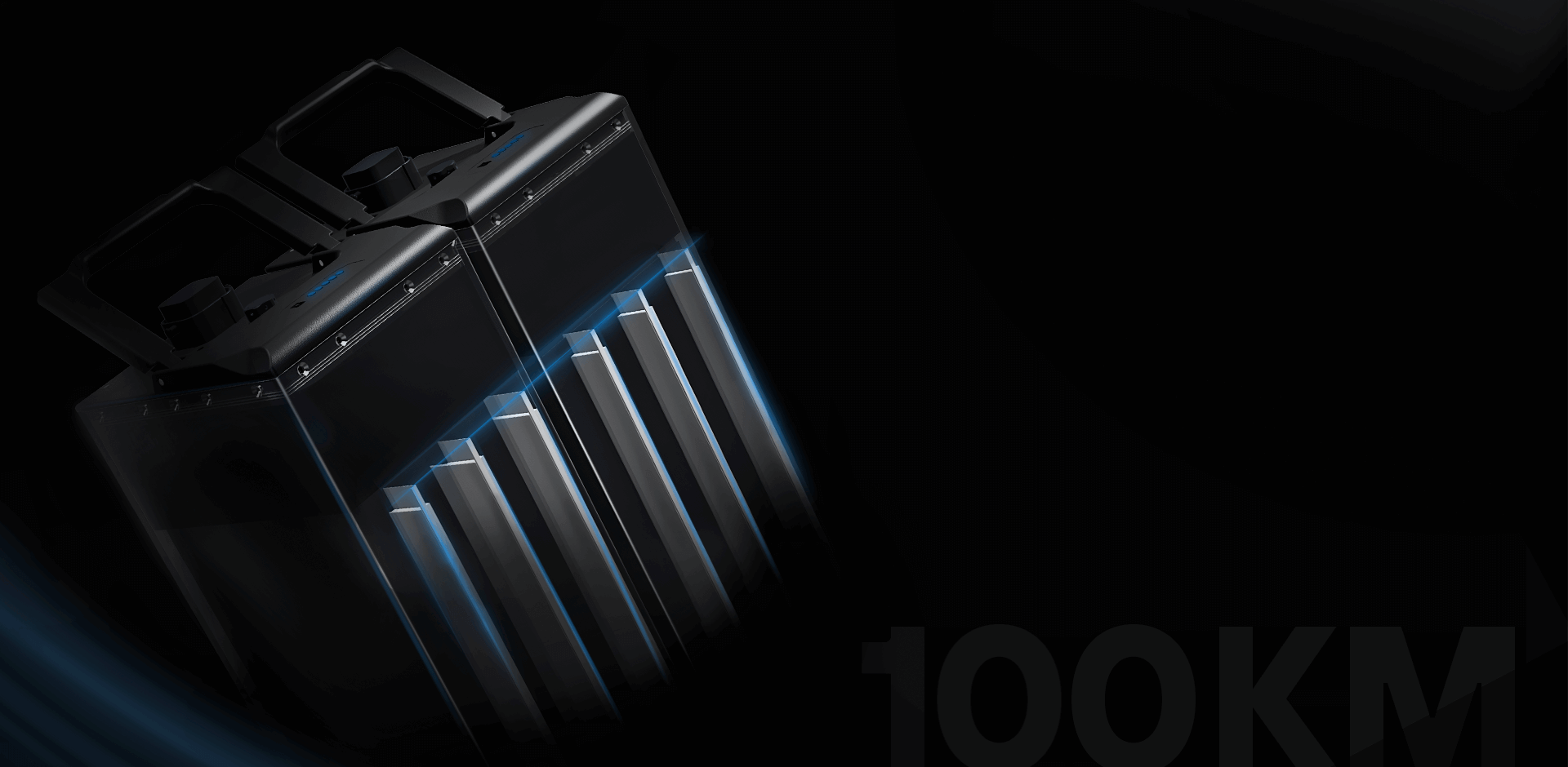 Επίσης έχει εμβέλεια στα 100km που επιτυγχάνεται με μπαταρία υψηλής απόδοσης λιθίου 69V27Ah*2.